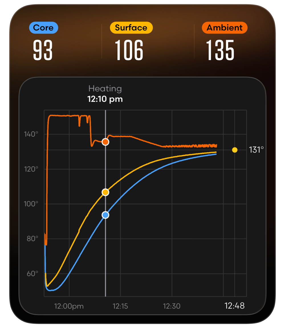 8 sensors measure what others miss. Track temps from the surface to the center, and build your chef-like instinct for controlling heat.