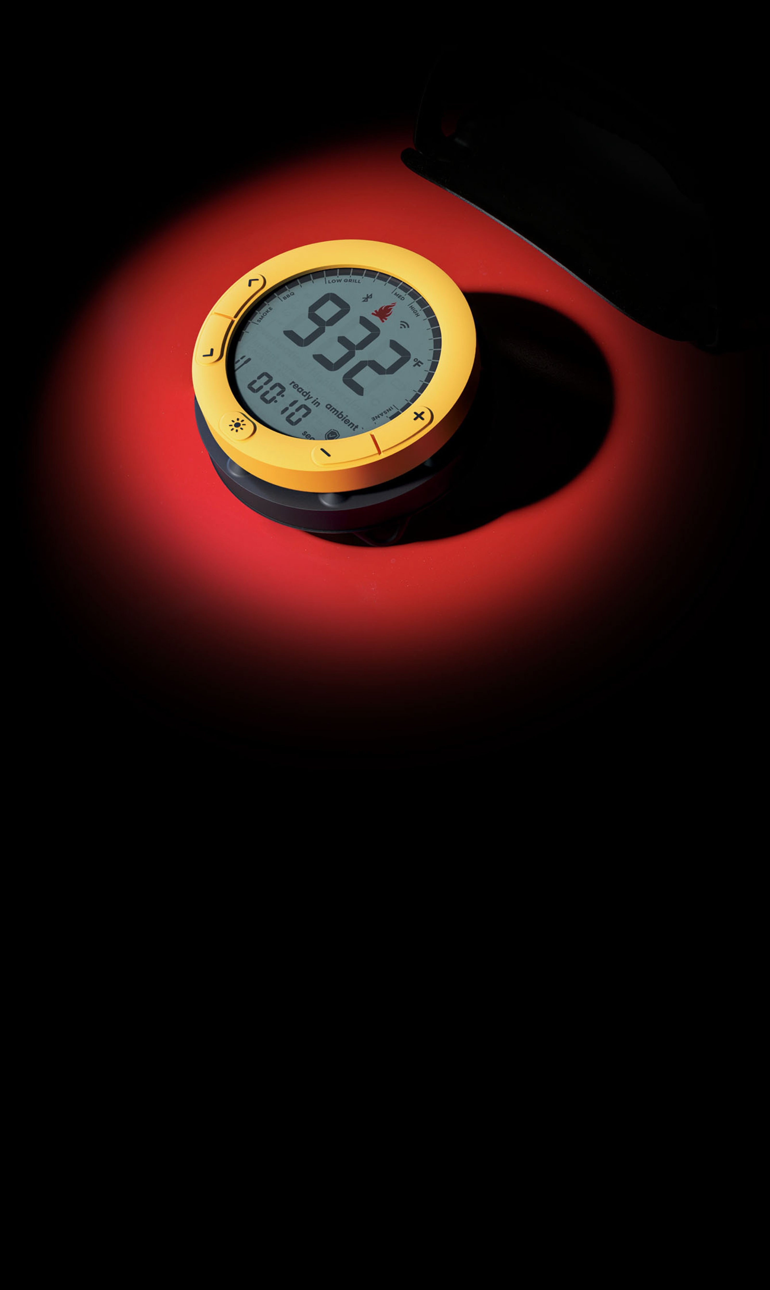For a rock-solid connection inside heavy metal grills. The Giant Grill Gauge relays cook data over WiFi and shows temps on its giant screen, readable from 50 ft away!