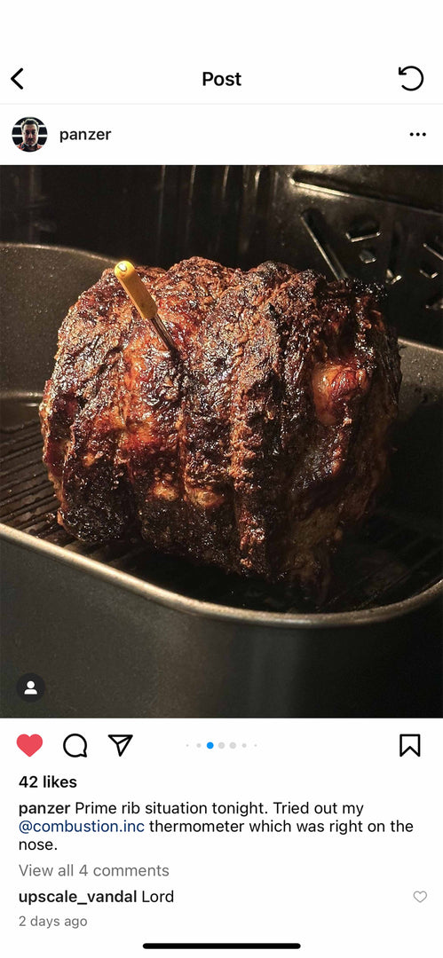 With its 900 ℉ max temperature rating and brazed hermetic seal, the Predictive Thermometer doesn't just survive high heat — it thrives in it.