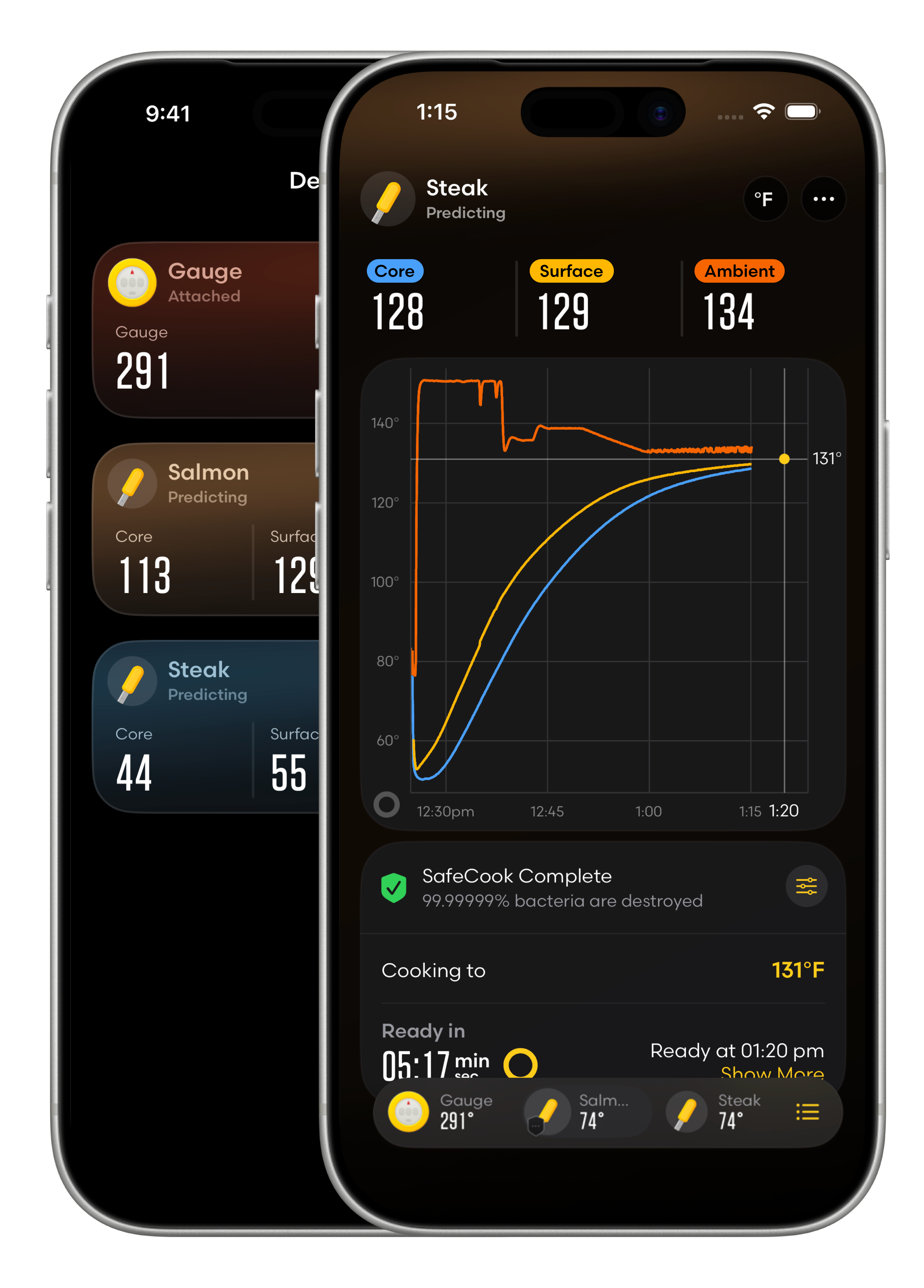 Stop overcooking, just to be safe. Pick your protein and let SafeCook™ tell you exactly when it's safe and delicious. It tracks both time and temperature throughout cooking to calculate when your food is safe - so you'll never have to overcook "just to be safe" again.