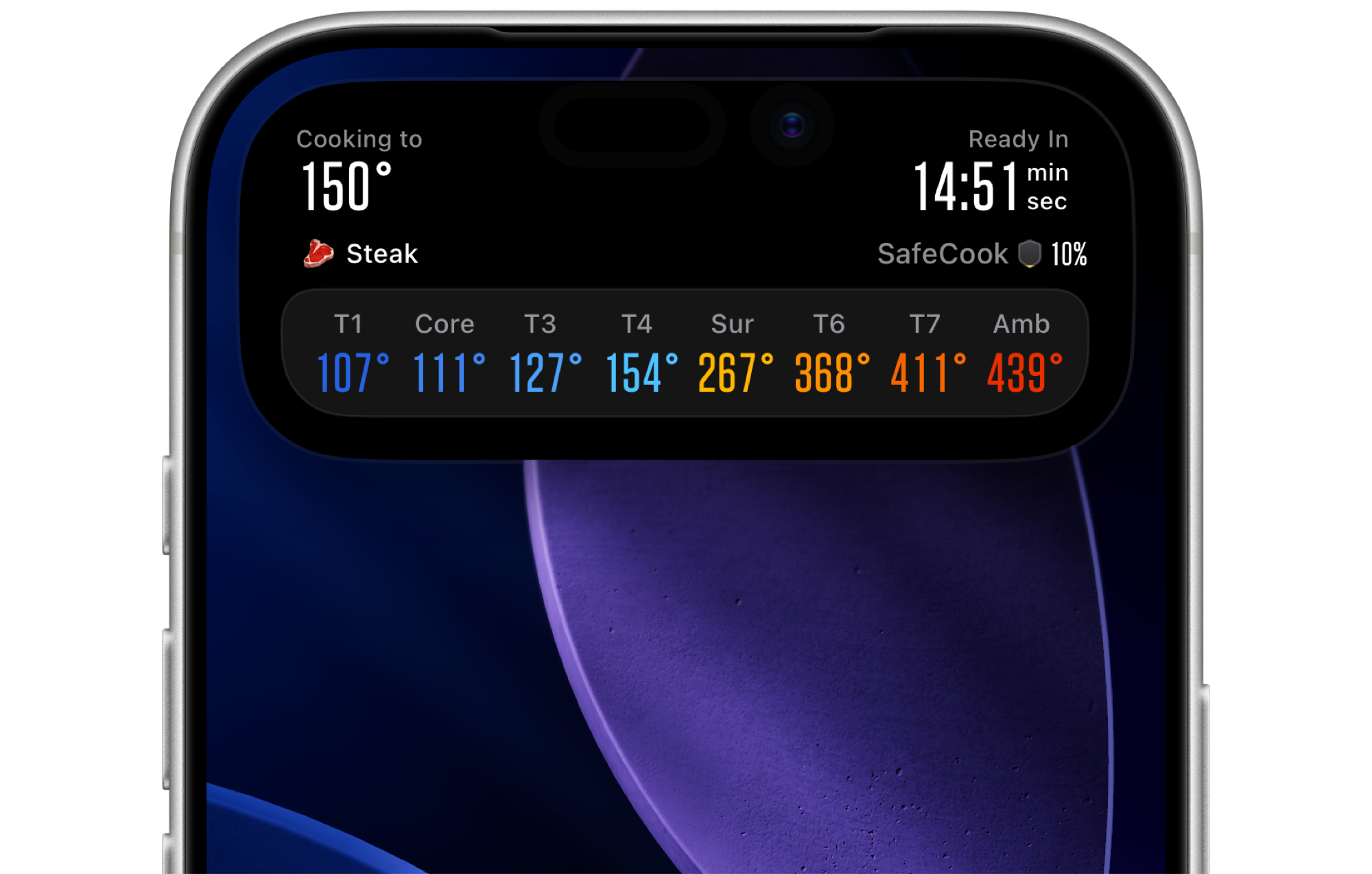 8 sensors measure what others miss. Track temps from the surface to the center, and build your chef-like instinct for controlling heat.