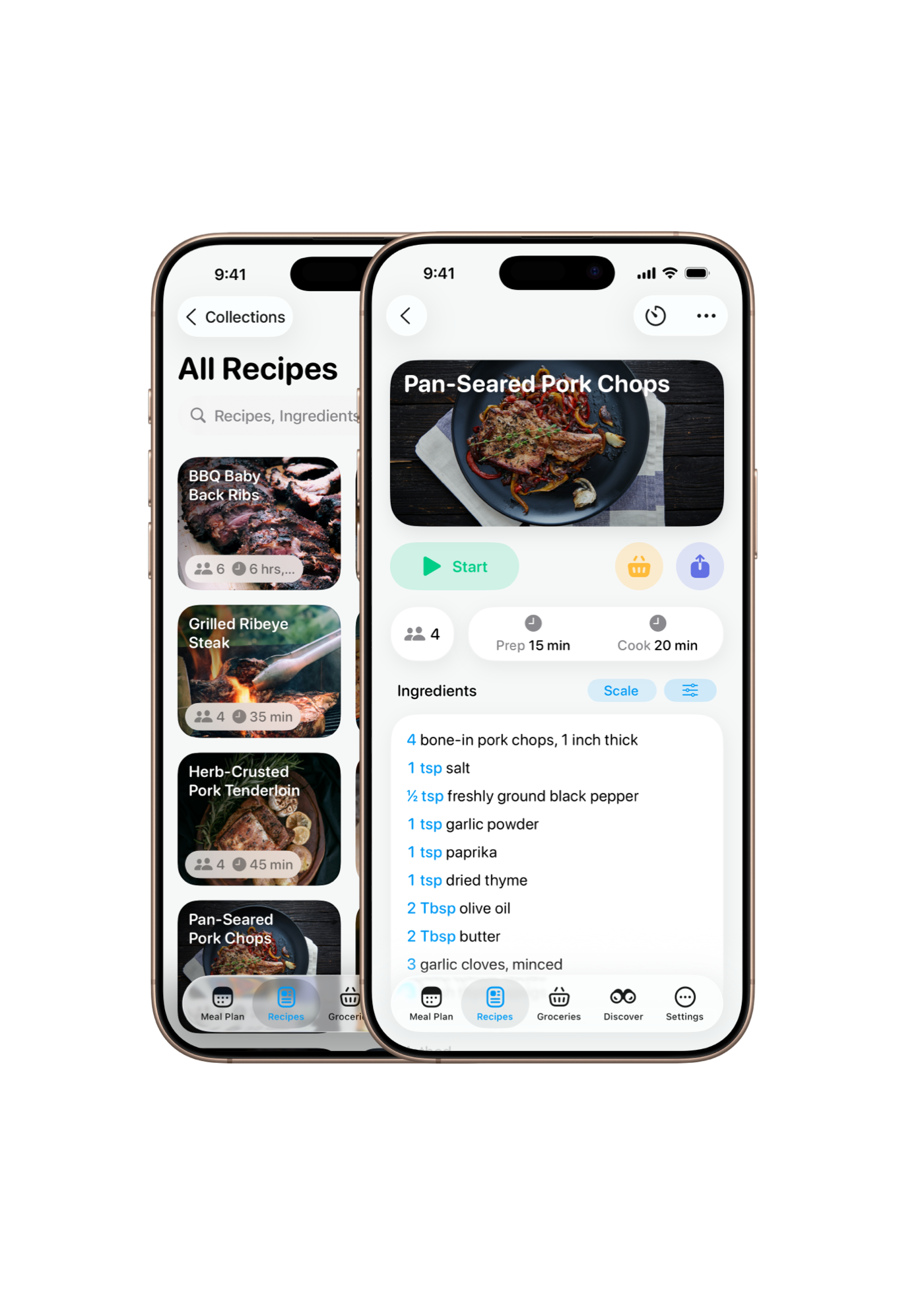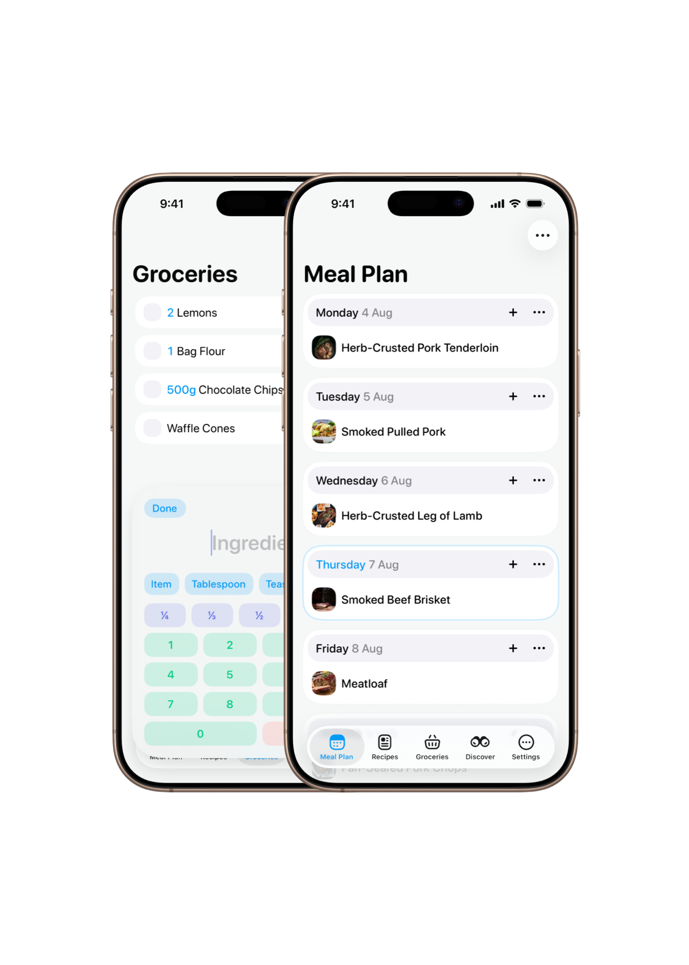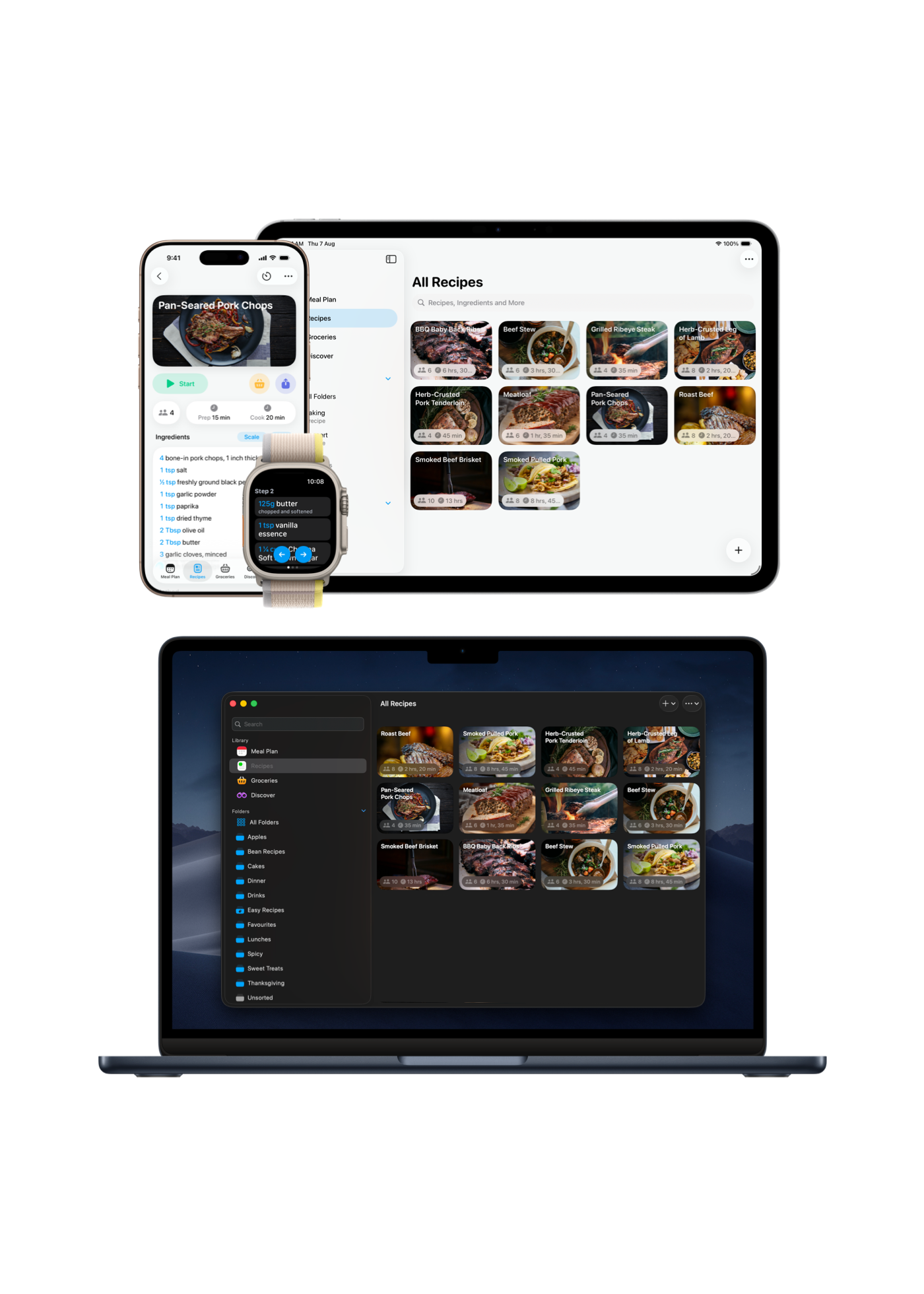 - Back-up and sync recipes with iCloud